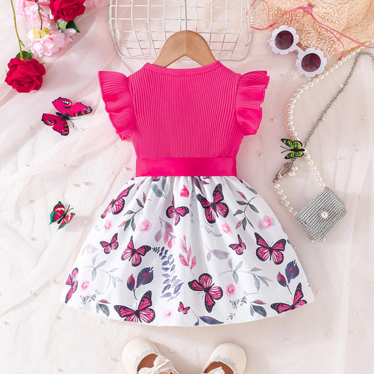 Dress For Kids 6-36 Months Cotton Ruffle Sleeve Cute Butterfly Floral Summer Princess Formal Dresses Ootd For Newborn Baby Girl