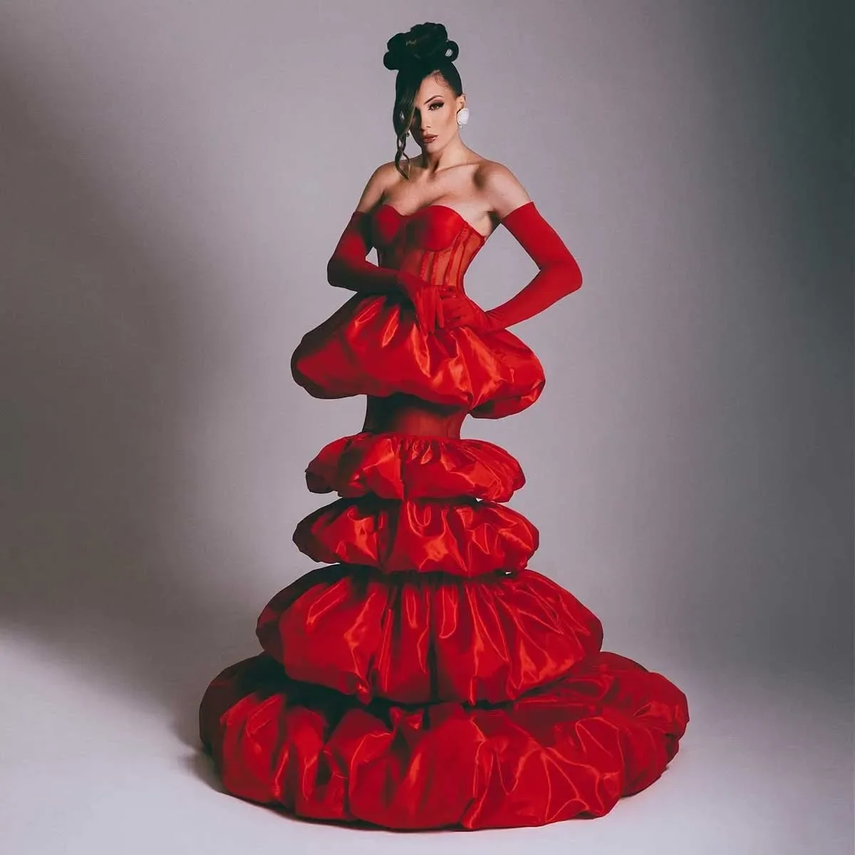 2025 Elegant Dark Red Maxi Dress for Women Long Shining Handmade Layered Mermaid Style Sweetheart Floor Length Formal Prom Dress